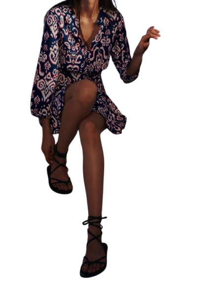 Abito blu corto con scollo a V 100% tessuto in poliestere per comodità e Look Chic a prezzi all'ingrosso