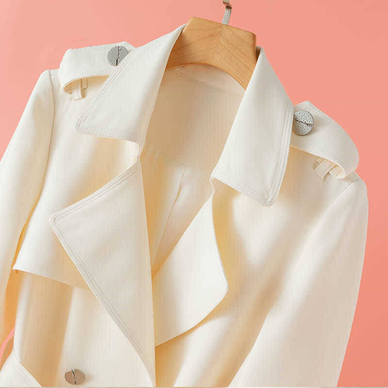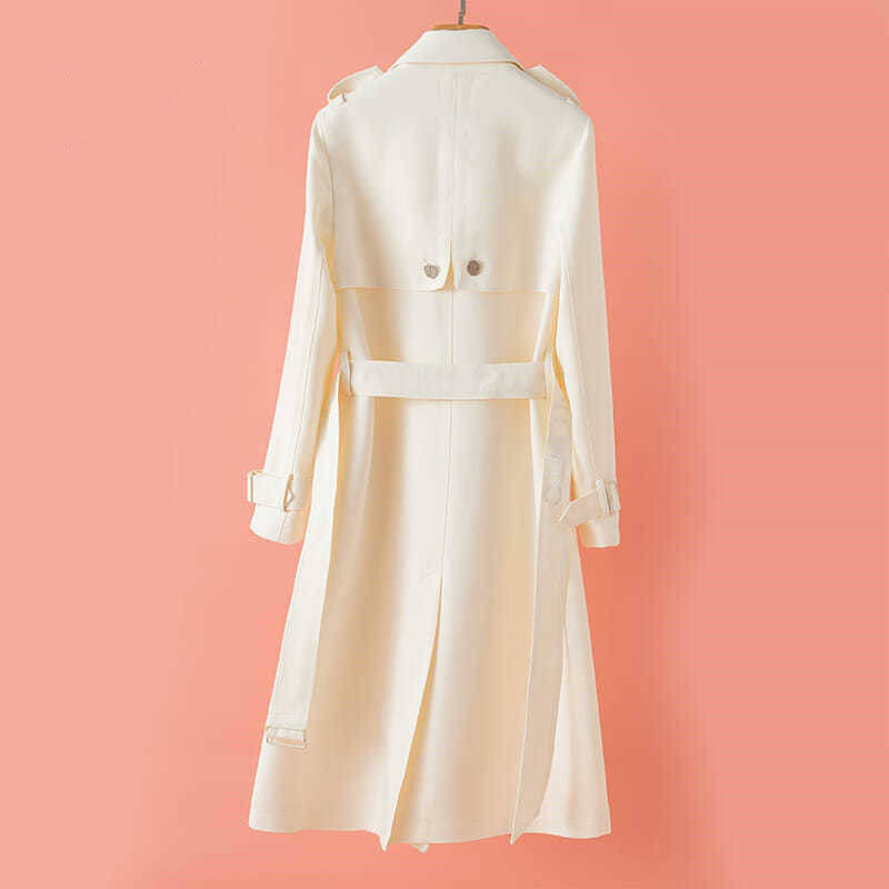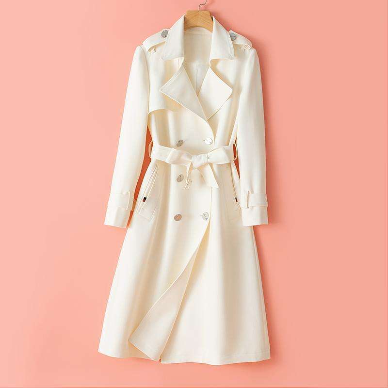 Cappotto Trench Beige di Alta Qualità, Nuovo Modello 2026, Lunghezza Media, Effetto Ringiovanente, Elegante e Raffinato, con Laccetti, per Donna