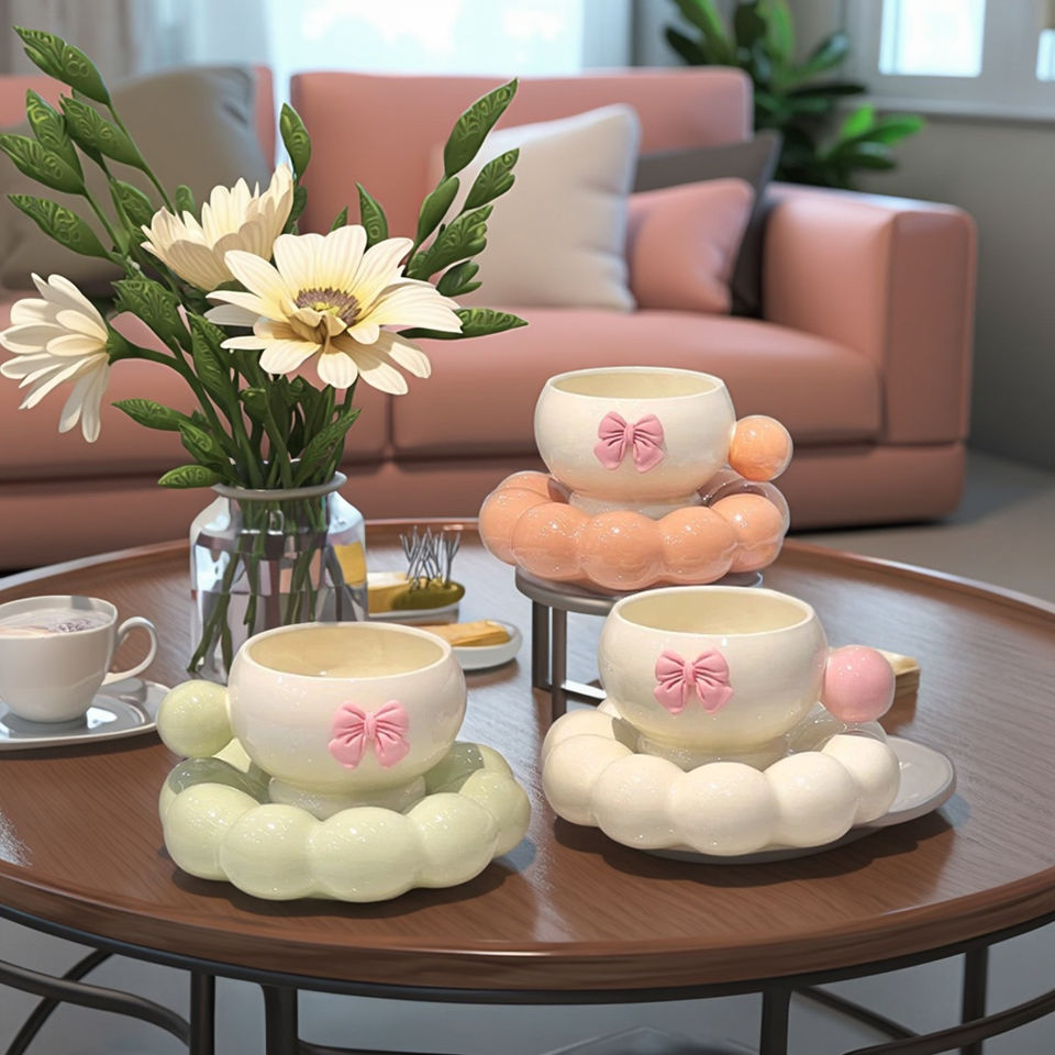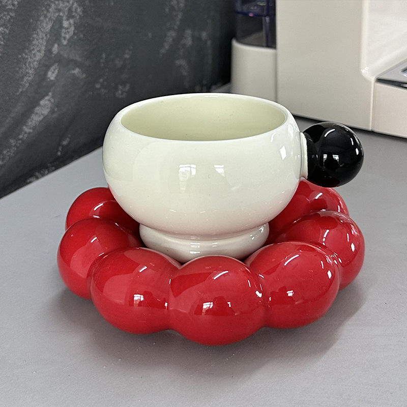 Set di Tazza e Piattino in Ceramica di Alta Qualità, Design Minimalista Nordico con Manico, Utensili per Tè Pomeridiano per Casa e Ufficio