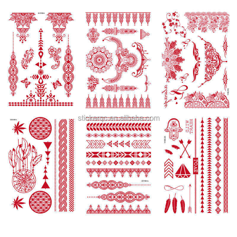 Adesivi per tatuaggi temporanei all'henné rosso a mano piena di alta qualità Henne Tatouage Marron hennè Tattoo Designs Stickers Women