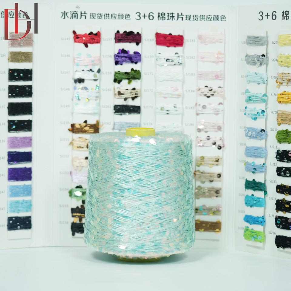High-quality Golden, purple and White Waterdrop Sequin Patterned Yarn in Stock at Factory
