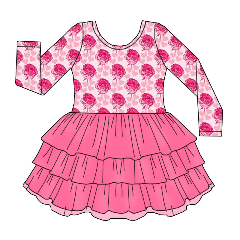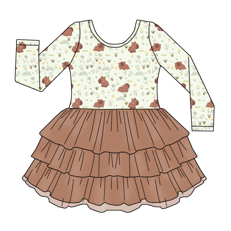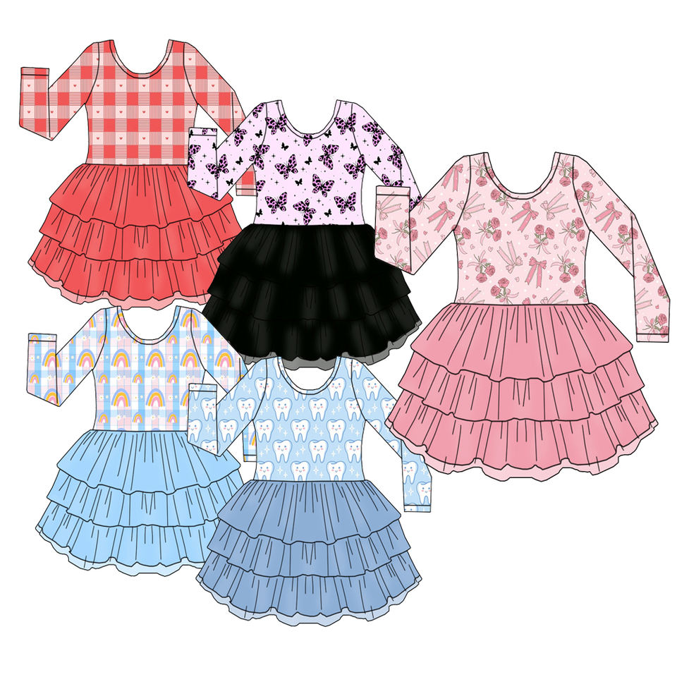 Abito Estivo di Alta Qualità per Bambine con Motivi Floreali, Maniche Lunghe, Morbido Pizzo a Tre Strati, Vestito in Tulle per Bambine