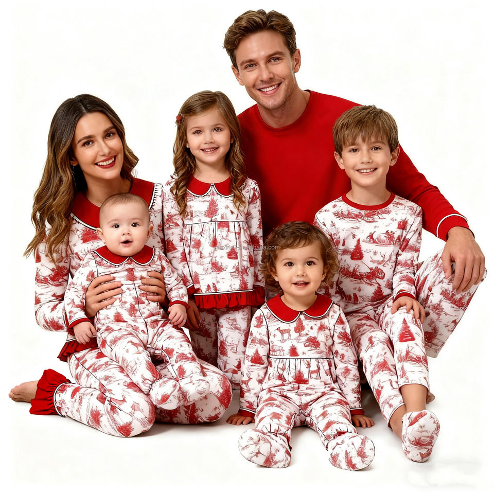 High-quality Winter Girls Clothing Peter Pan Collar Christmas Pyjamas Girls Sleepwears Sibling Pajamas Set