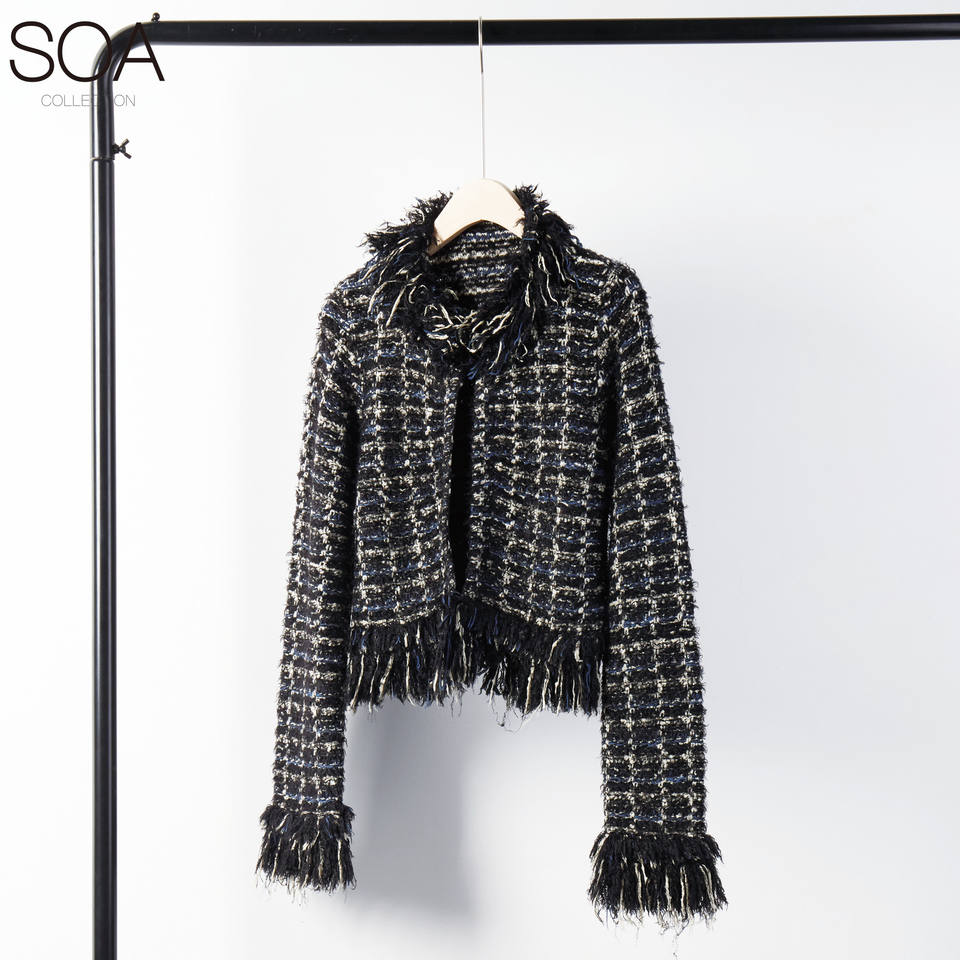 High quality custom sweater ladies cardigan knitted sweater fancy tweed cardigan with fringe