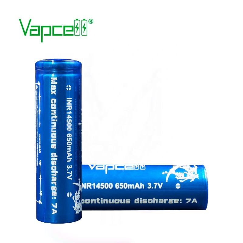 Batterie agli ioni di litio 650mAh scarica 7A Vapcell ricaricabile 3.7v batteria 14500 per torcia elettrica