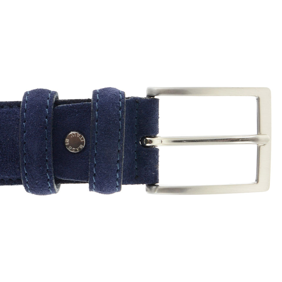 Cinture da uomo di lusso in camoscio blu artigianali di alta qualità del famoso produttore italiano in vendita 6 pezzi in una scatola