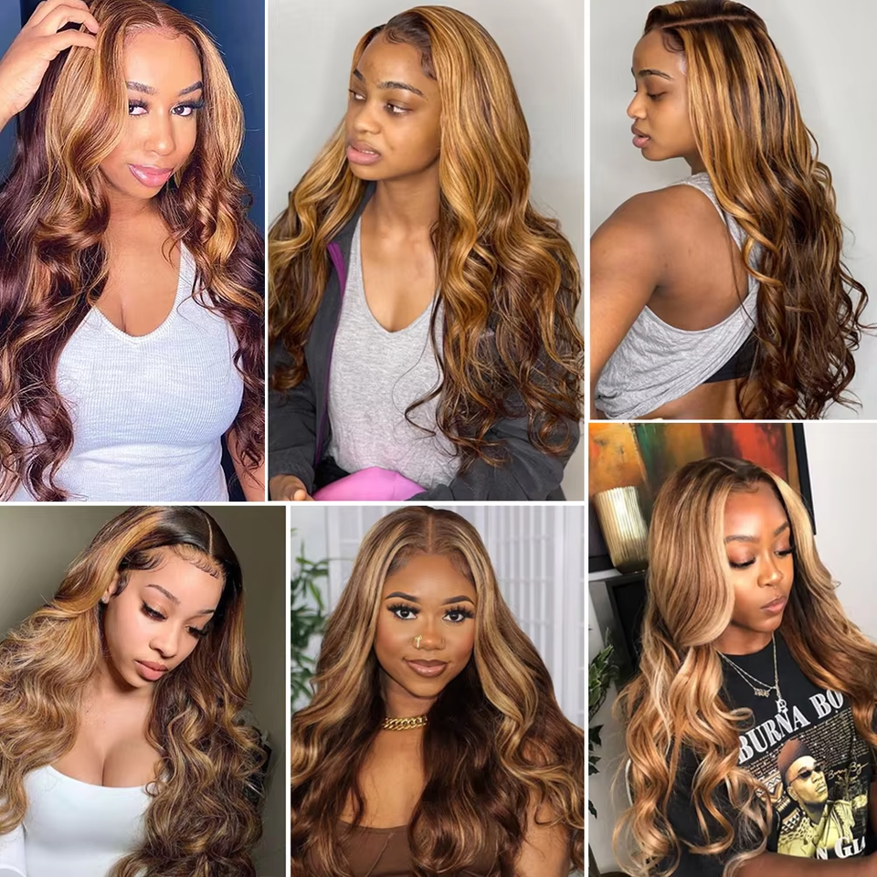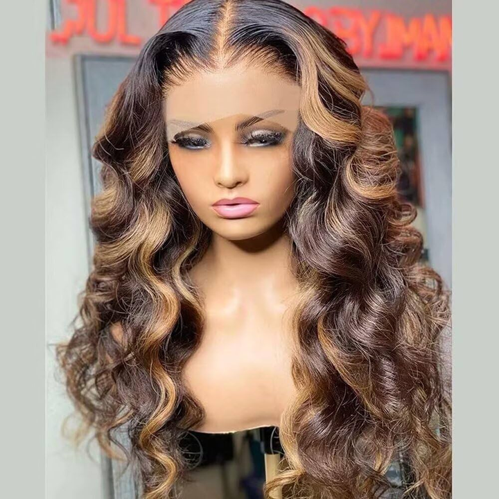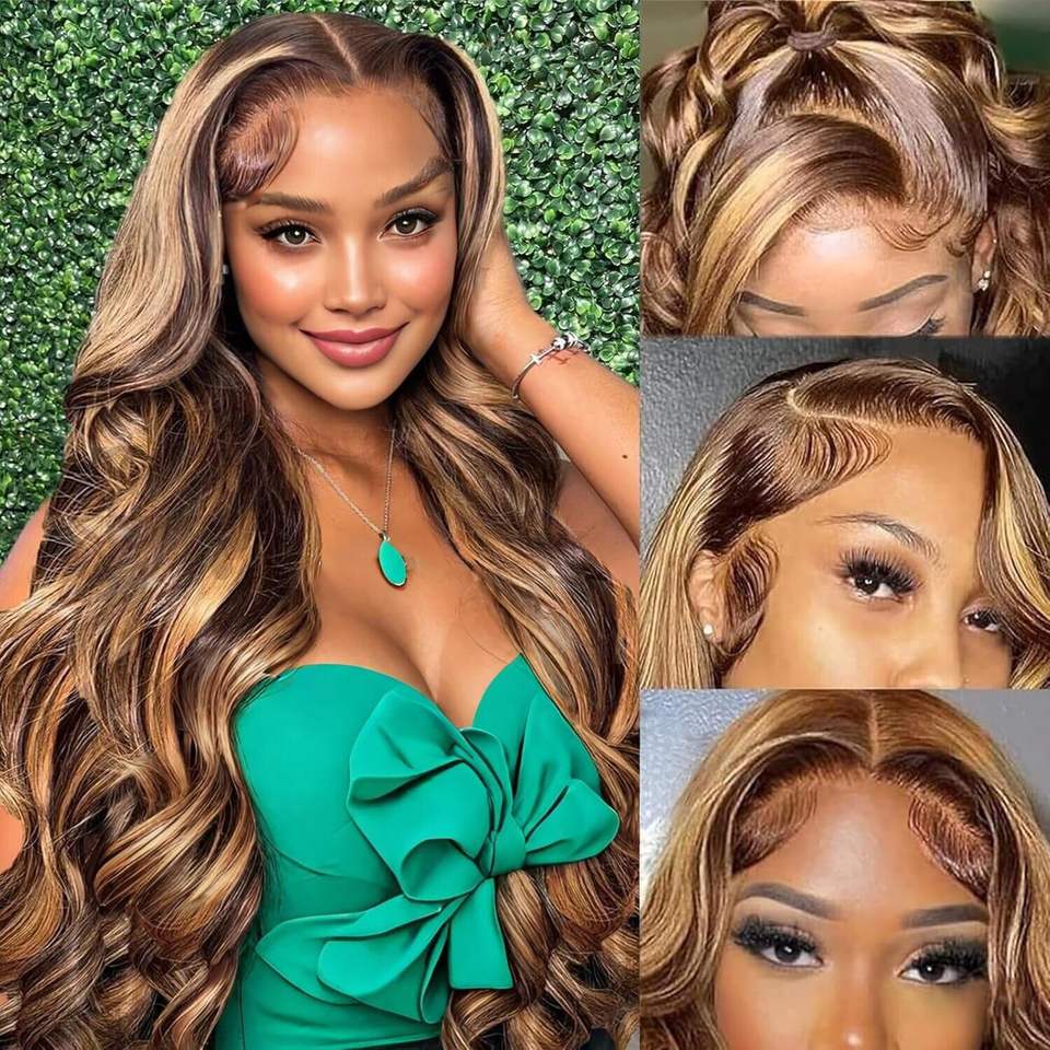 Highlight Body Wave Wig Human Hair Lace Wigs 4/27 Honey Blonde Loose Wave HD Lace Front Wig Brazilian Remy Hair for Black Women