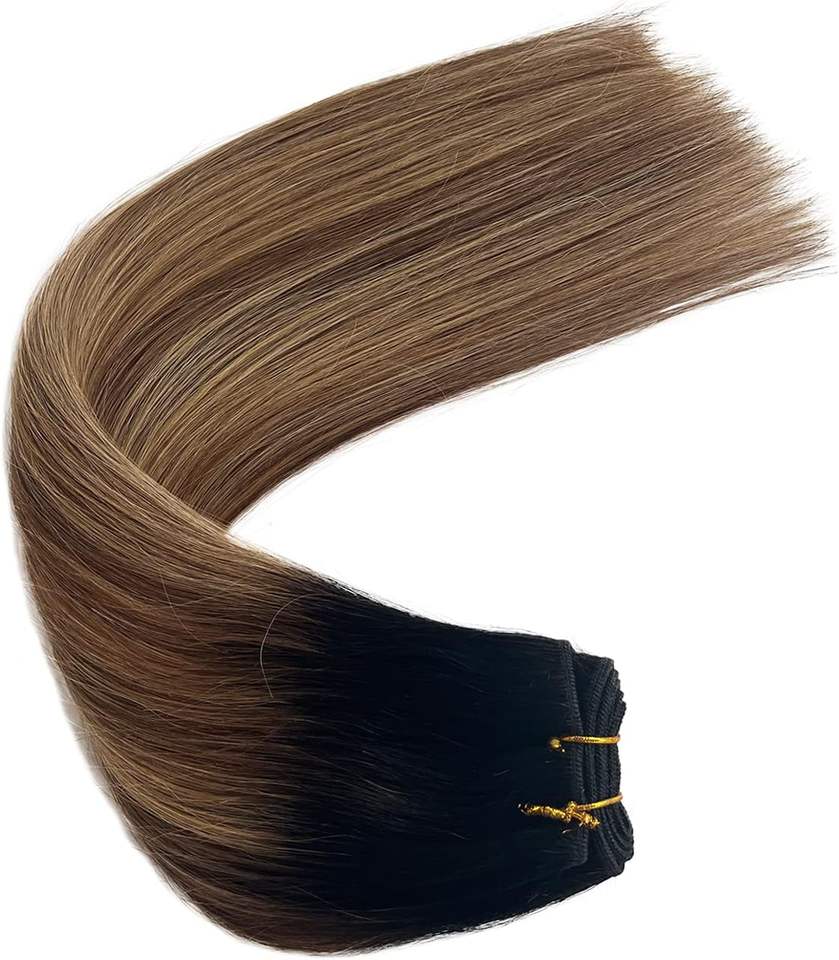 Highlights cucire nelle estensioni dei capelli umani fasci di trama di colore Ombre dal nero al marrone castano con biondo fragola
