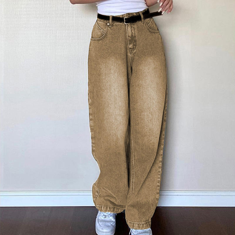 Jeans Marroni a Gamba Larga da Donna, Stile Retrò, Vita Alta, Lavaggio Vintage, Vestibilità Regolare, Casual, Estivi, Altamente Valutati
