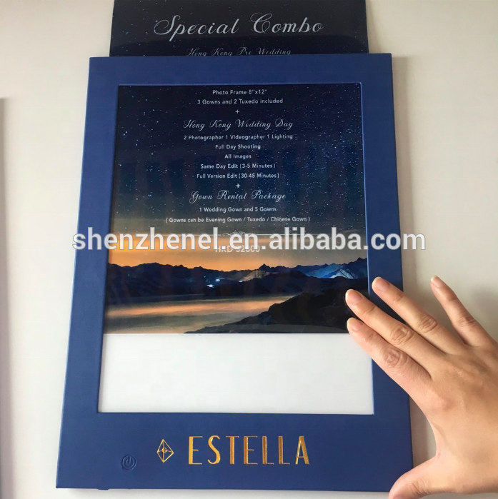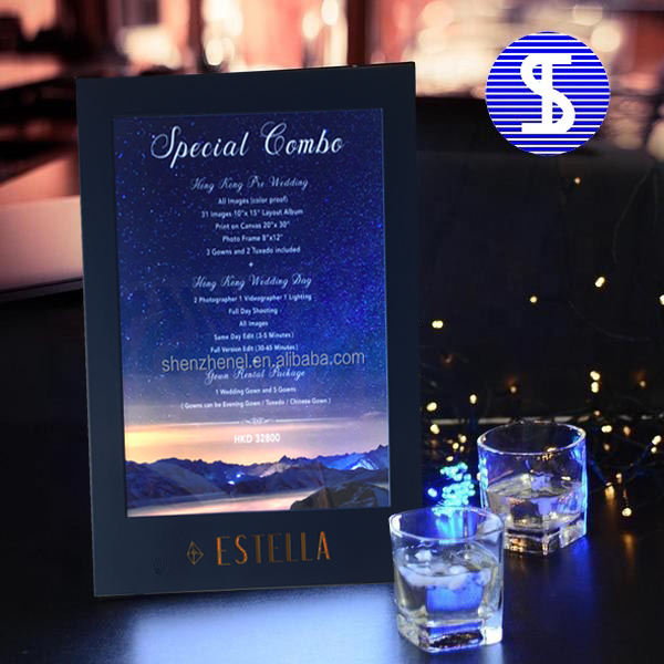 Hight luminosità bianca led retroilluminato illuminato menu per il ristorante dell'hotel personalizza one-side A4 carta del menu con oro logo