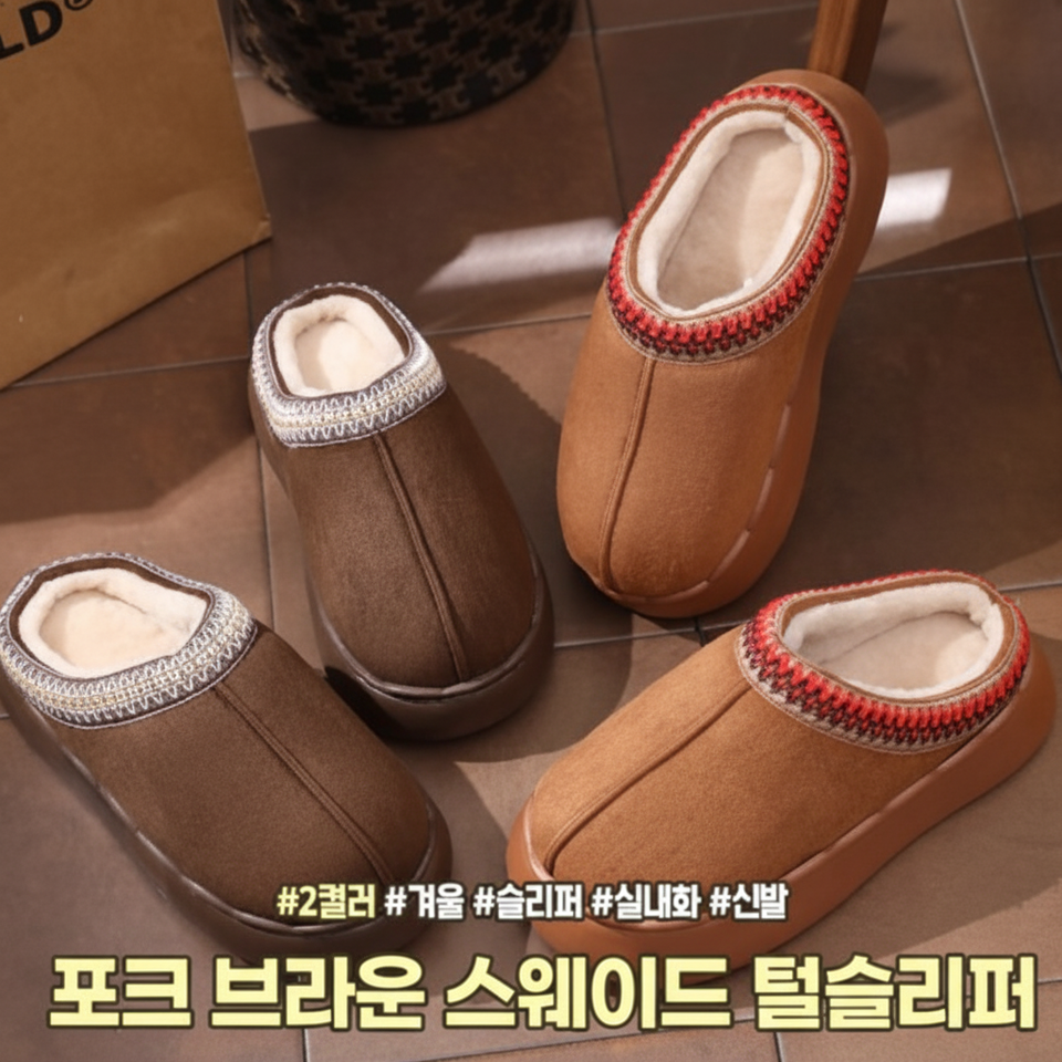 Highview 2328 Indoor Winter Fur Slippers with High Heel Fork Suede Design for Office Cold Protection and Height Increase