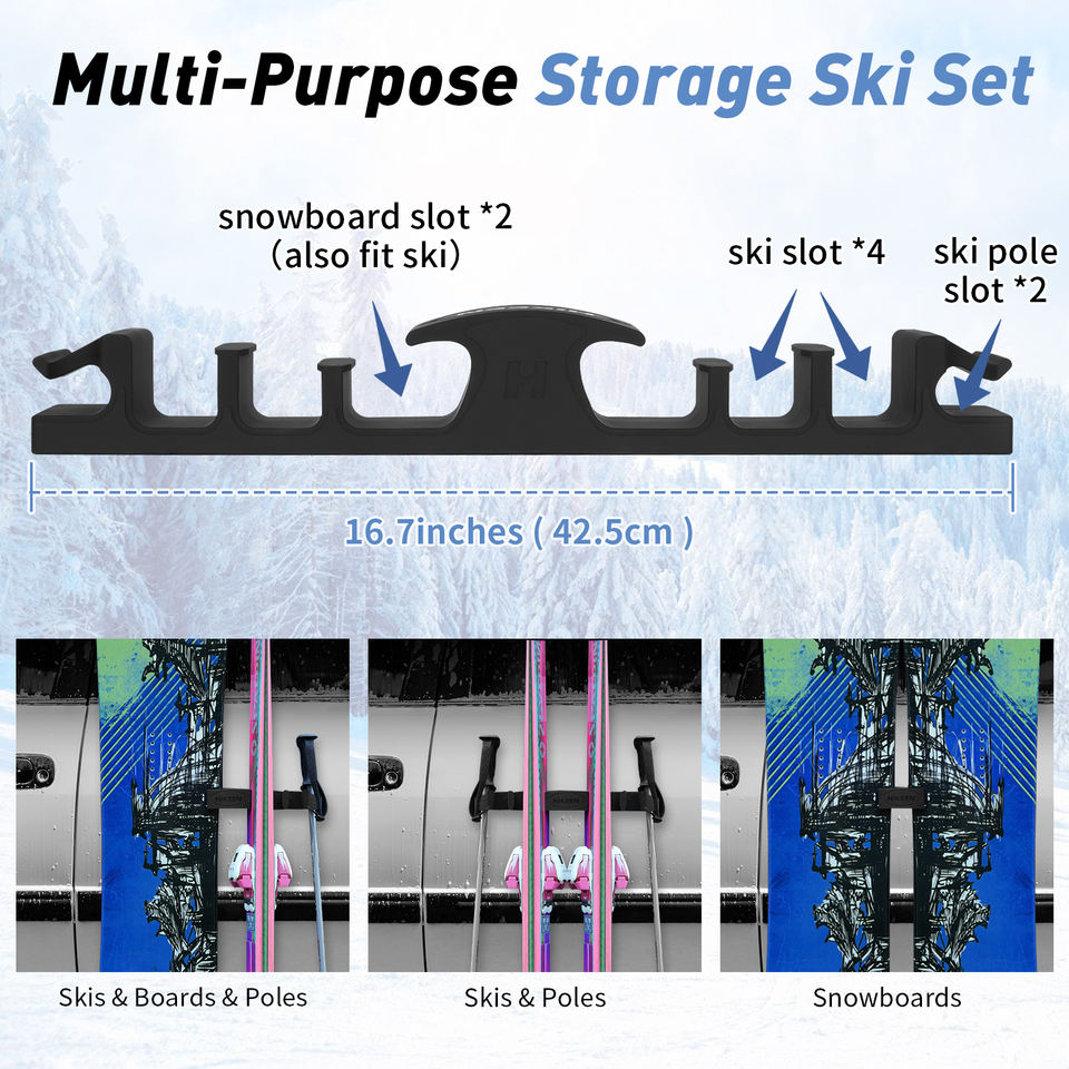 Supporto per veicolo da Snowboard con sci magnetico Hikeen, può contenere fino a 4 paia di sci o 2 Snowboard, 2 bastoncini da sci