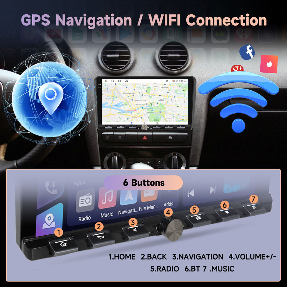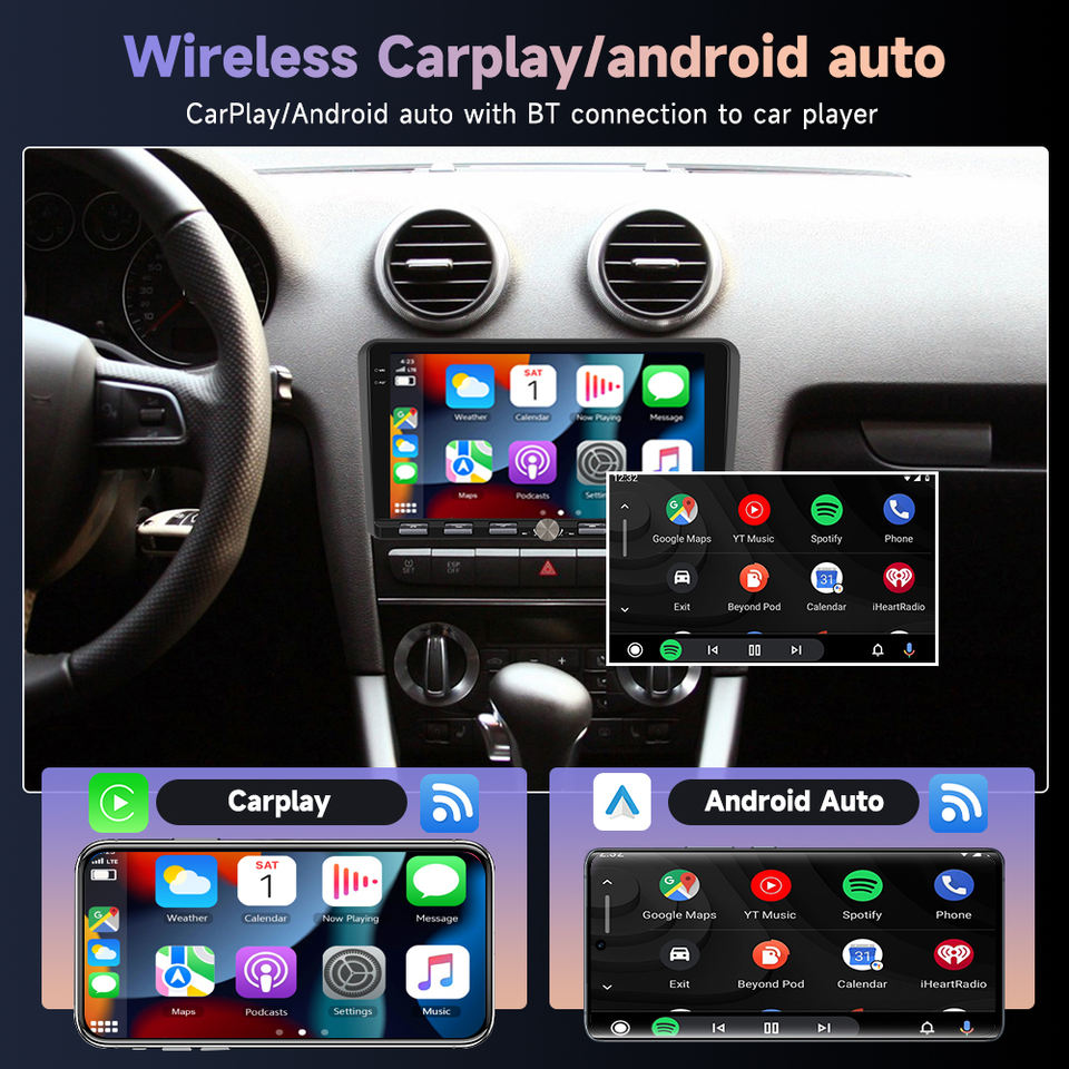 Hikity 9 pollici autoradio Android per Audi A3 2003-2013 autoradio 4 + 64G 2 Din CarPlay Wireless/Android Auto GPS WIFI tasto pianoforte