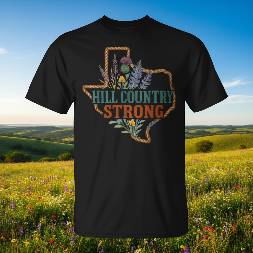 T-shirt Hill Country Strong Texas con design Hill Country Strong