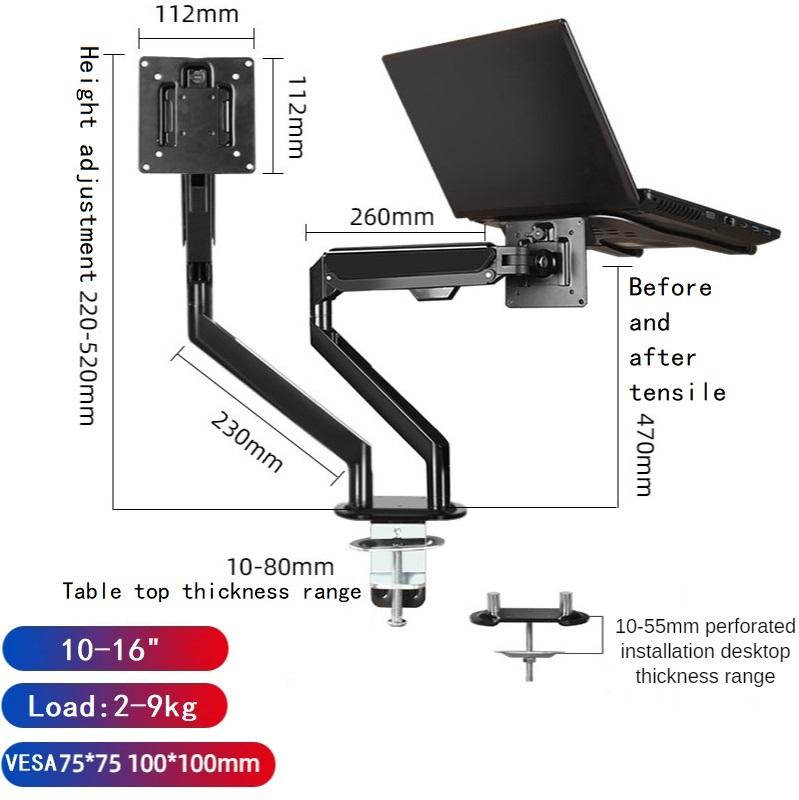 Hillport Laptop Monitor Arm Computer Mount Drawing Tablet Desktop Adjustable Desk Computer Mount for 10 to 16 Inch