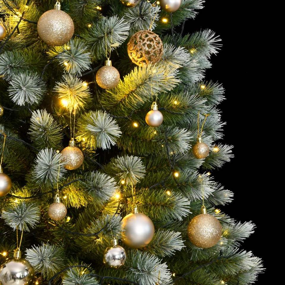 Albero di Natale Artificiale Pieghevole con 300 LED e Set di Palline, 210 cm, Decorazioni Festive