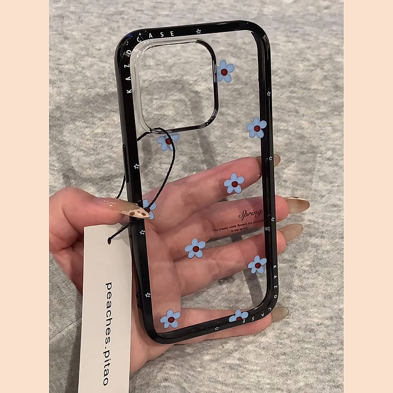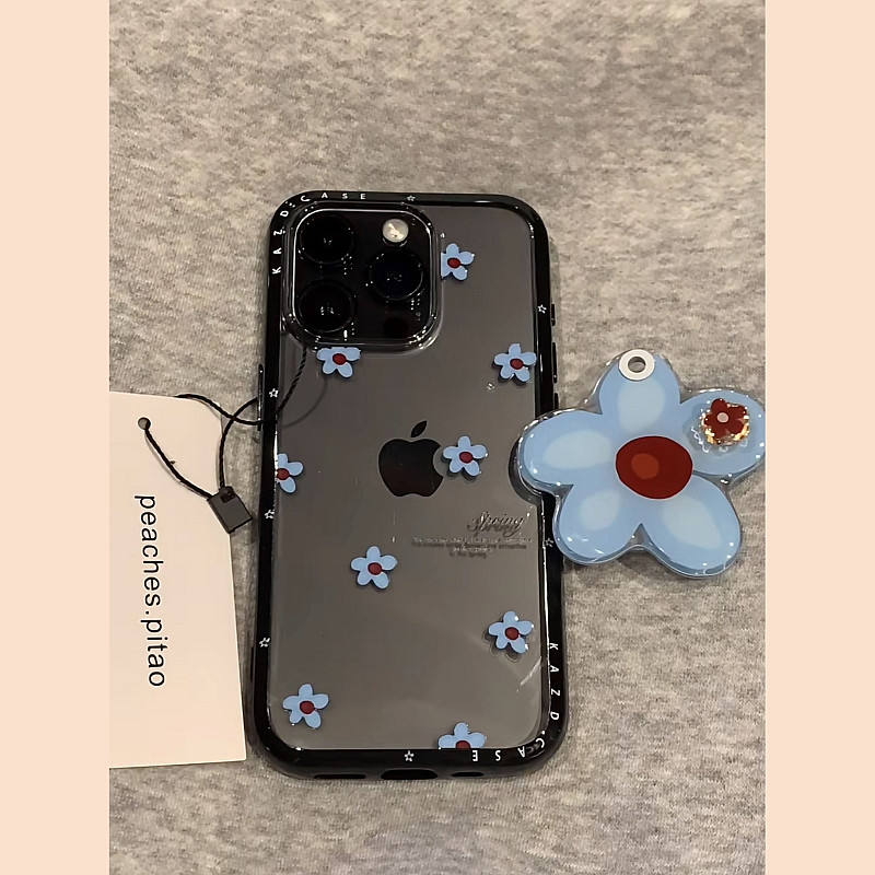 Hinlucky Korean Ins Blue Flower Acrylic Mobile Phone Case Rotating Mirror Bracket Drop-Resistant Protective Cover for Apple 16