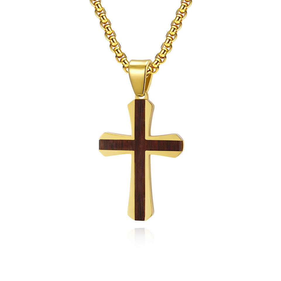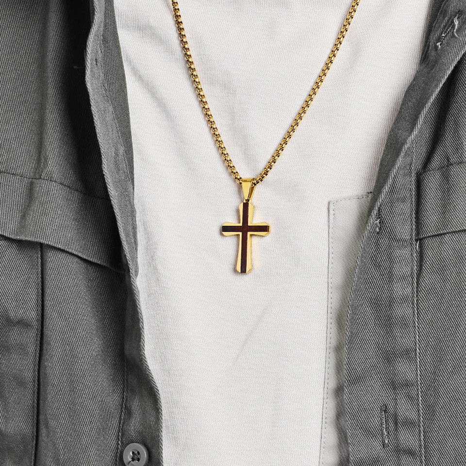 Collana con Ciondolo a Croce Personalizzata in Acciaio Inossidabile Placcato Oro 18k, Stile Hip Hop e Punk per Uomo