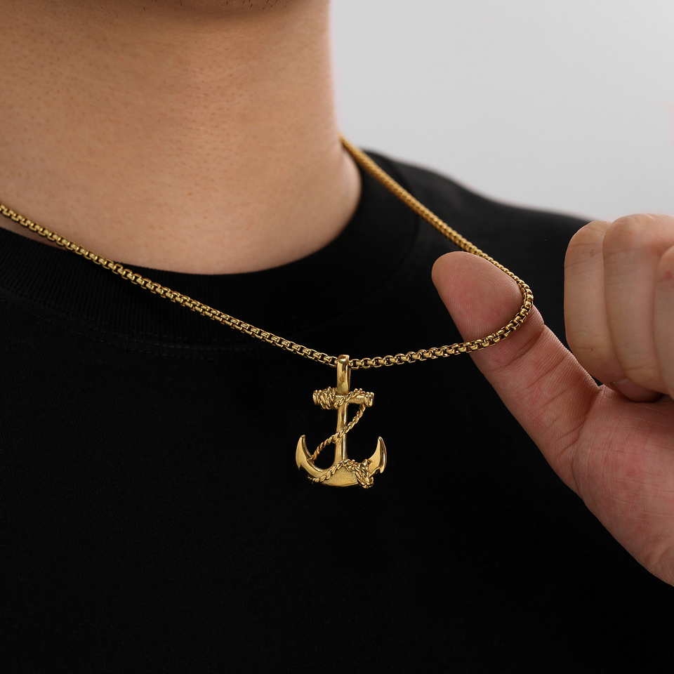 Hip Hop Anchor Pendant Necklace With Rope Detailing Stainless Steel Mens Nautical Jewelry Customizable Urban Street Style