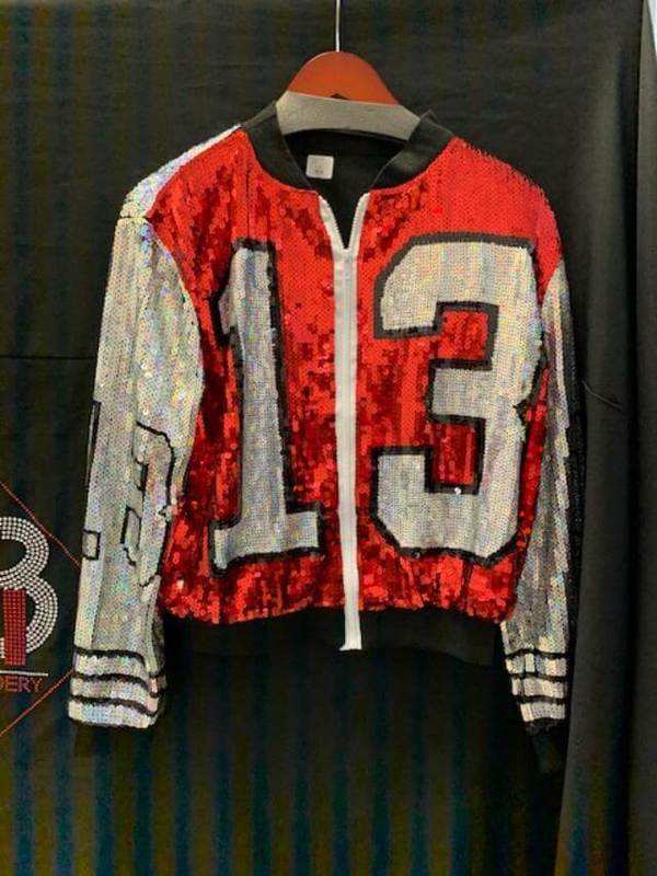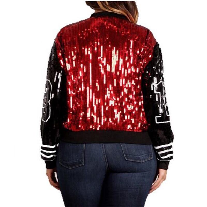 Hip Hop Delta Sigma Short Sleeve Red Black 13 Letter Casual Sequin Bling Women Number 13 Jersey Sequin Jacket Jumper Coat