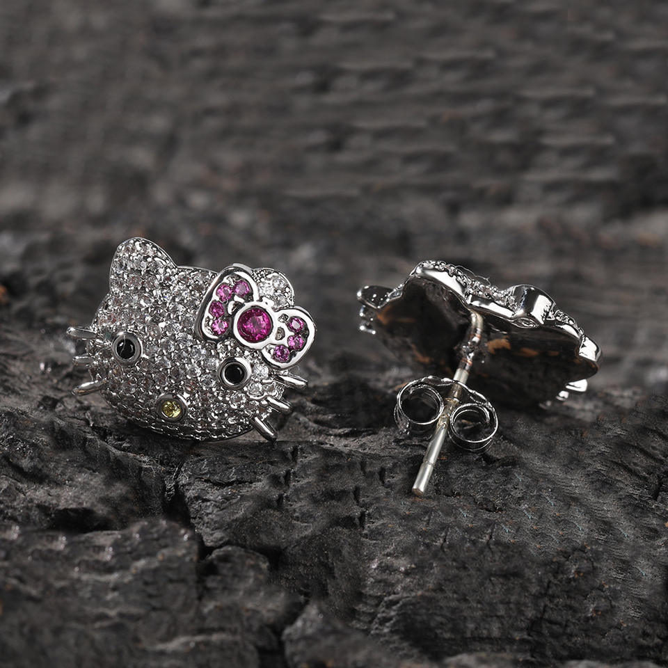 Orecchini Hip Hop a Forma di Gatto con Zirconi, Gioielli alla Moda, Orecchini a Perno con Animali Cartoon per Ragazze