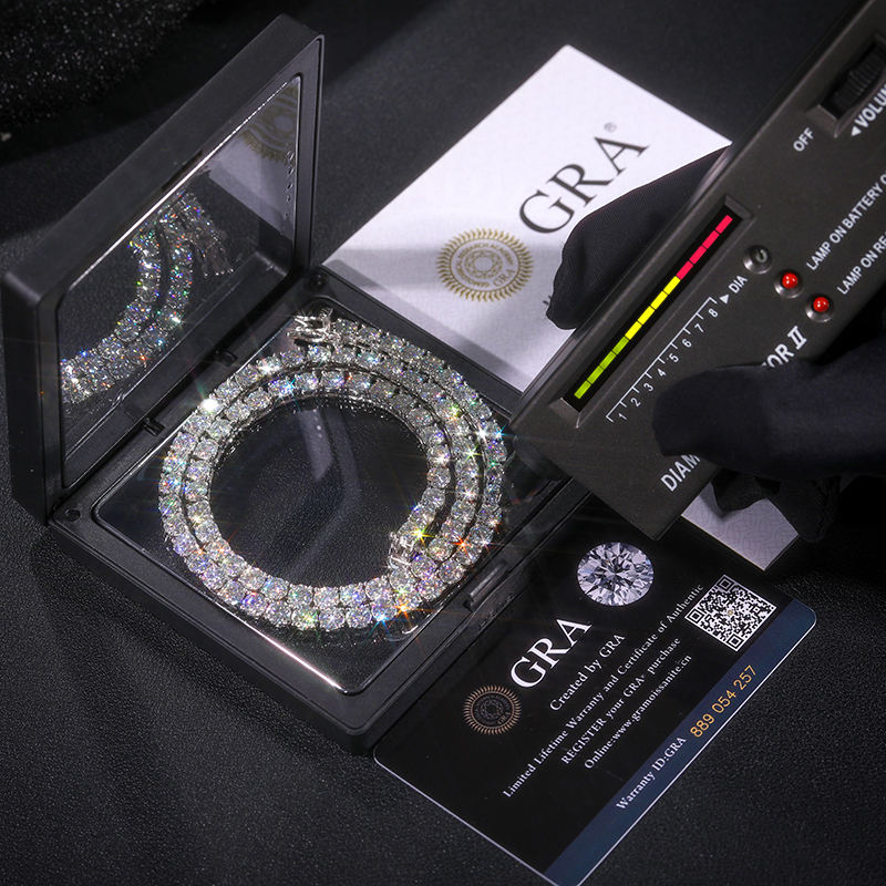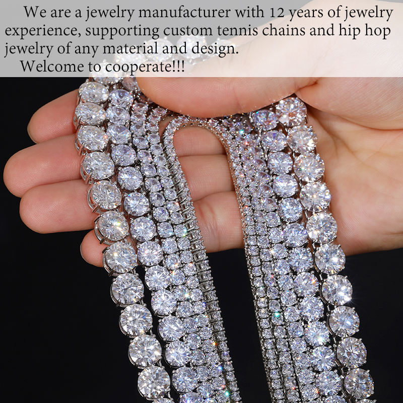 Collana Tennis Hip Hop Iced Out in Argento Sterling 925 con Diamanti Moissanite Colore D Bianco VVS 2MM 3MM 4MM 5MM 6MM da Donna e Uomo