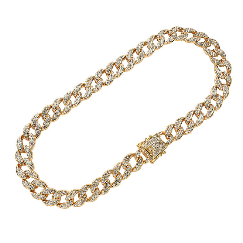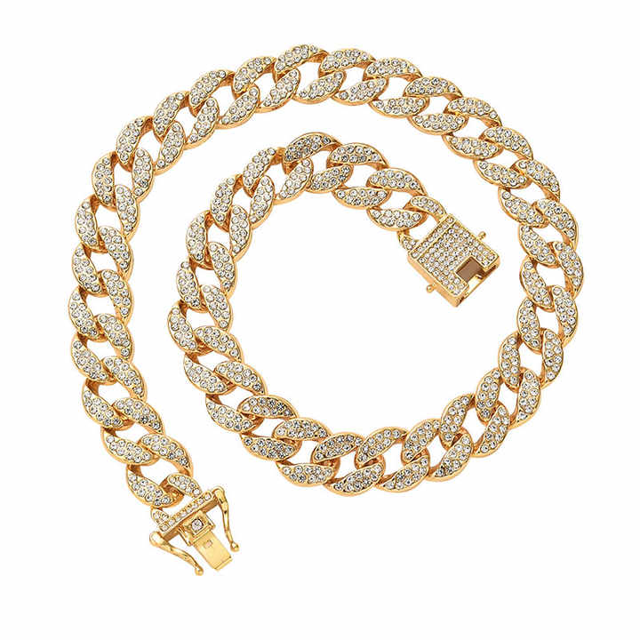 Hip Hop Iced Out Paved Rhinestones 1Set 15MM Full Miami Curb Cuban Chain CZ Bling Rapper Necklaces For Men Jewel for Men Jewelry