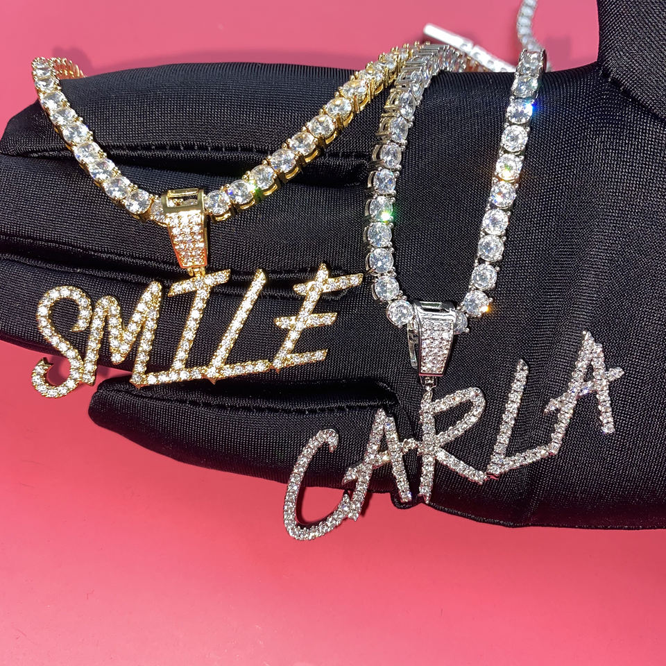 Hip Hop ha ghiacciato fuori personale del pendente nome Personalizzato lettera diamante del pendente della collana Spazzola carattere nuovo stile personalizzato nome collana del pendente