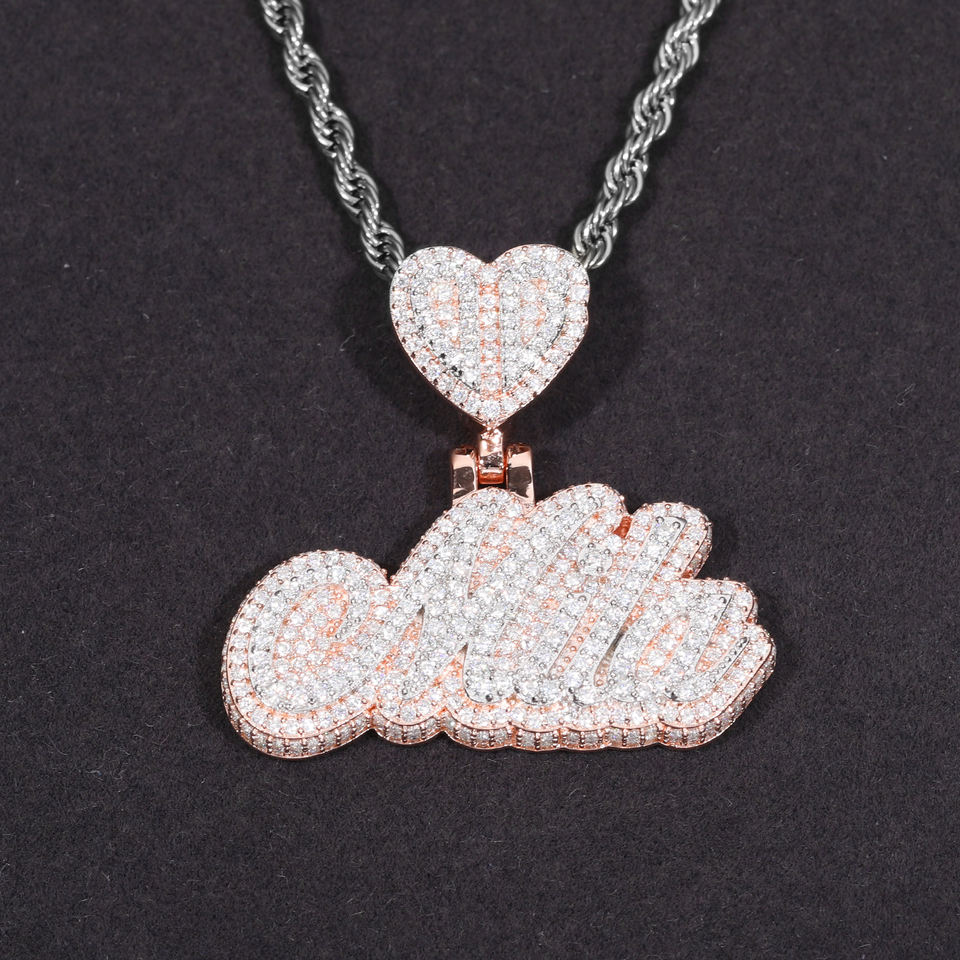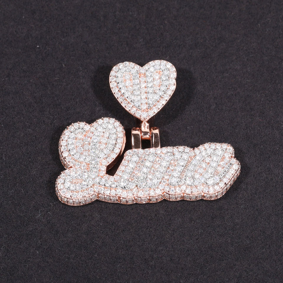 Collana con Ciondolo 3D Personalizzato Hip Hop, in Argento Sterling 925 con Diamanti Moissanite VVS Incassati, Ciondolo Lettera Personalizzata per Uomo e Donna