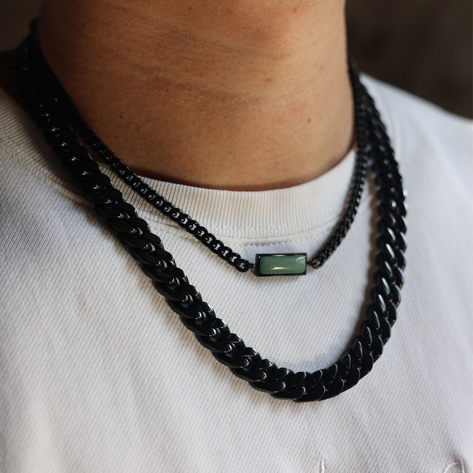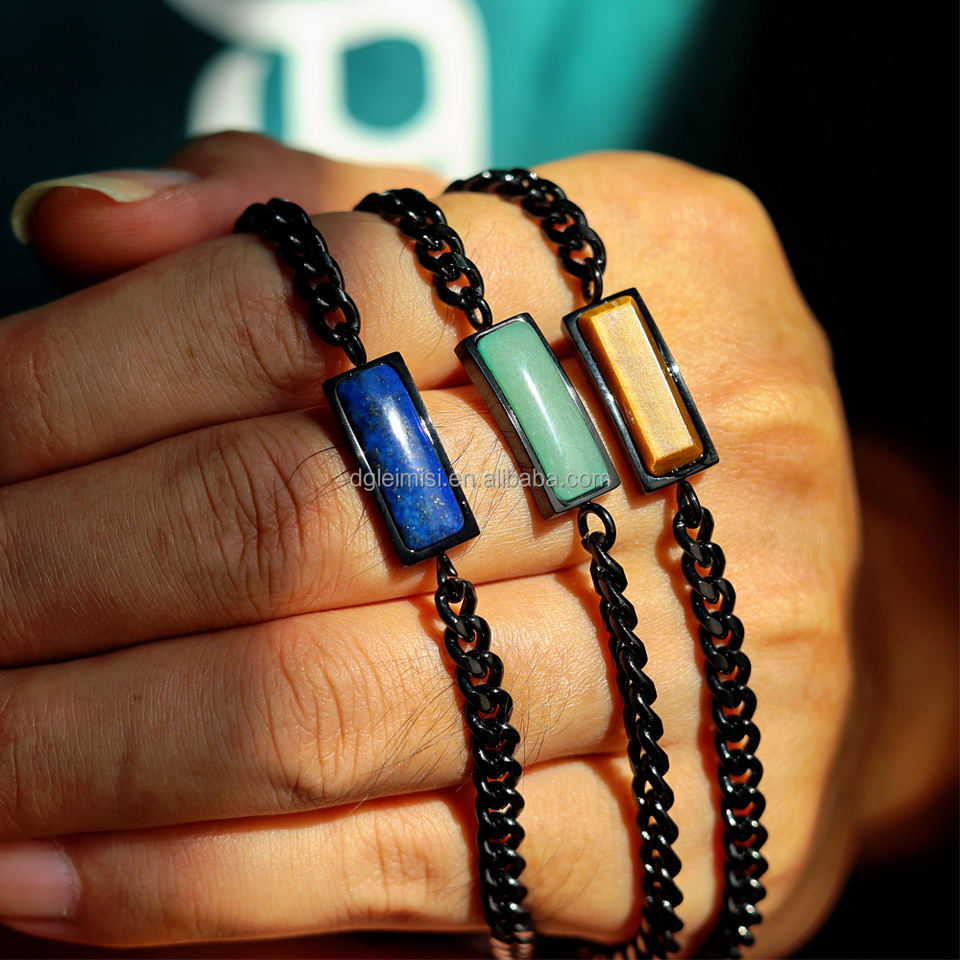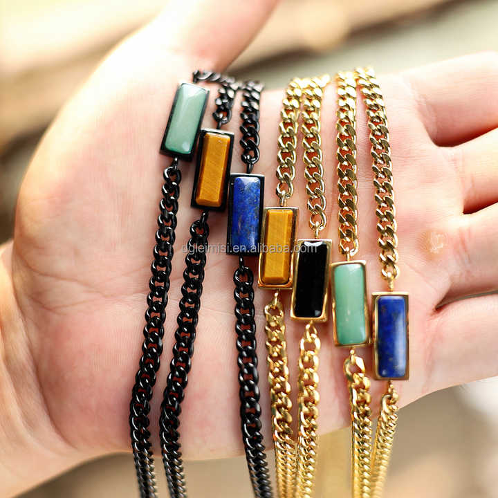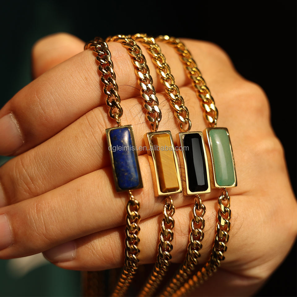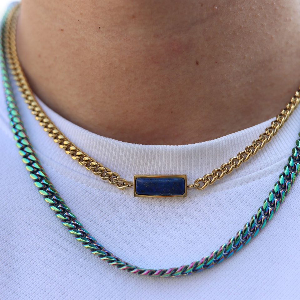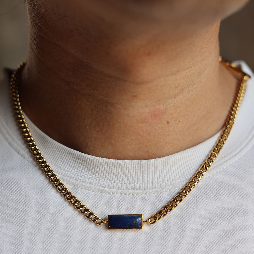 Hip Hop Jewelry Stainless Steel Lapis Lazuli Stone 14K 18K Gold Cuban Link Chain Necklace for Men Boys Choker Necklace for Him