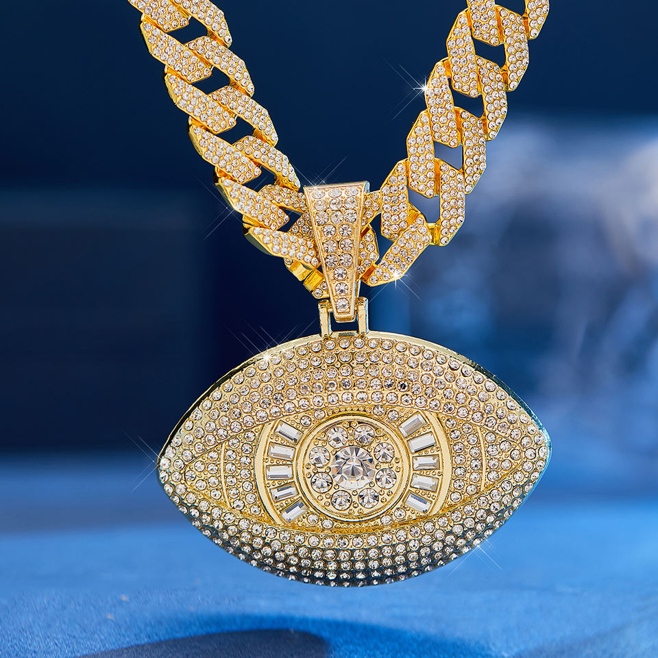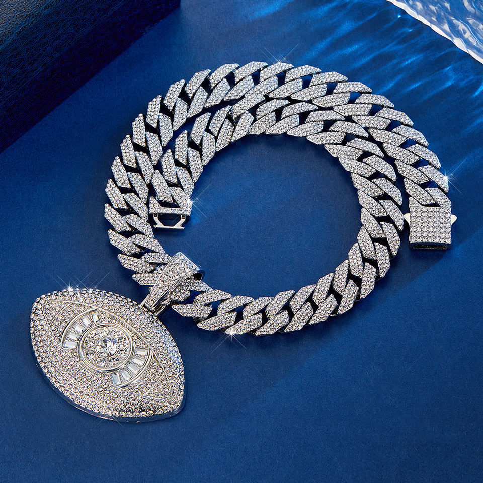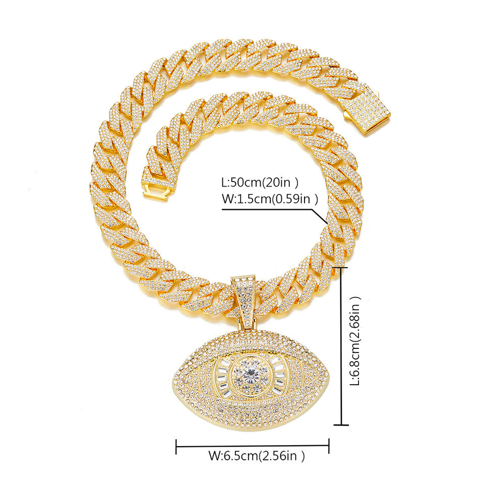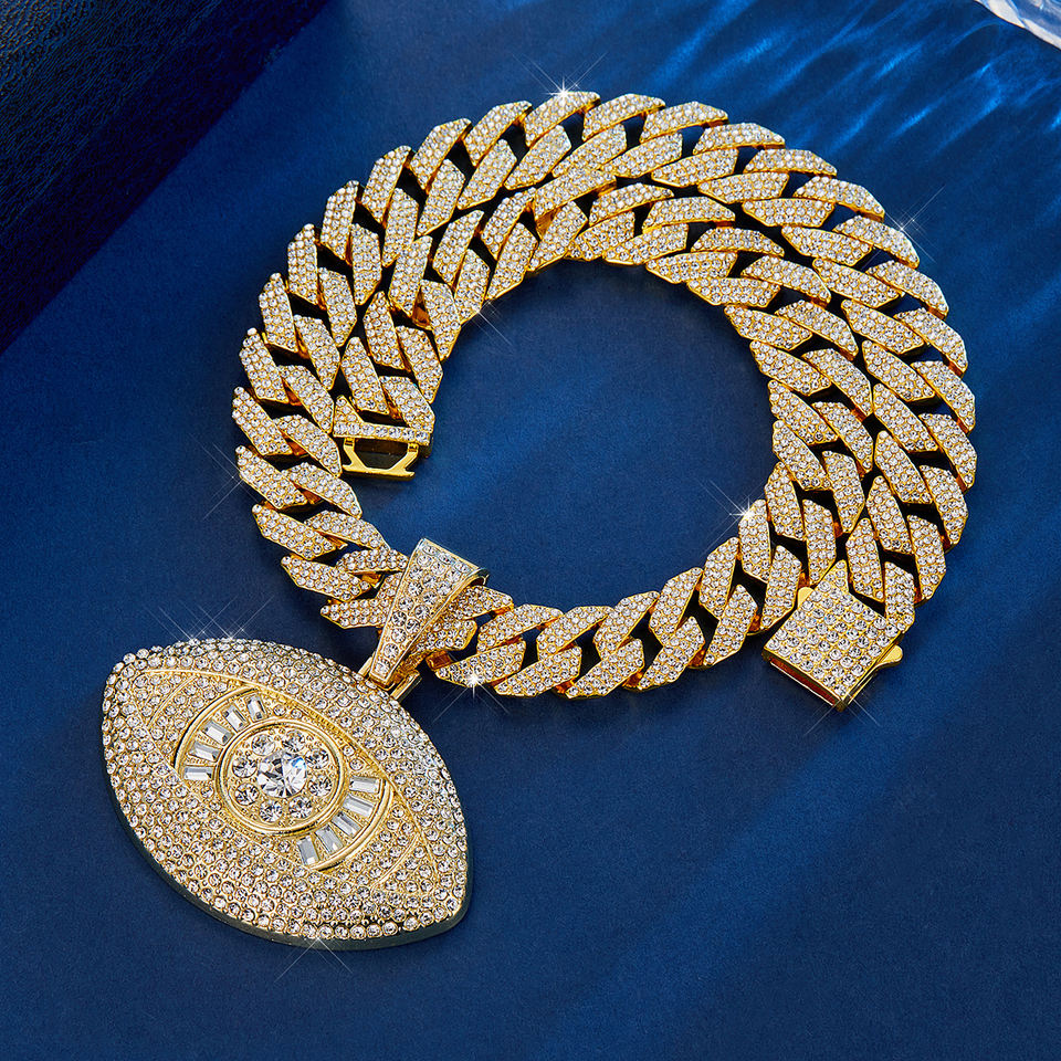 Collana con ciondolo a forma di Hip Hop con 3 strass a maglia cubana per uomo e donna