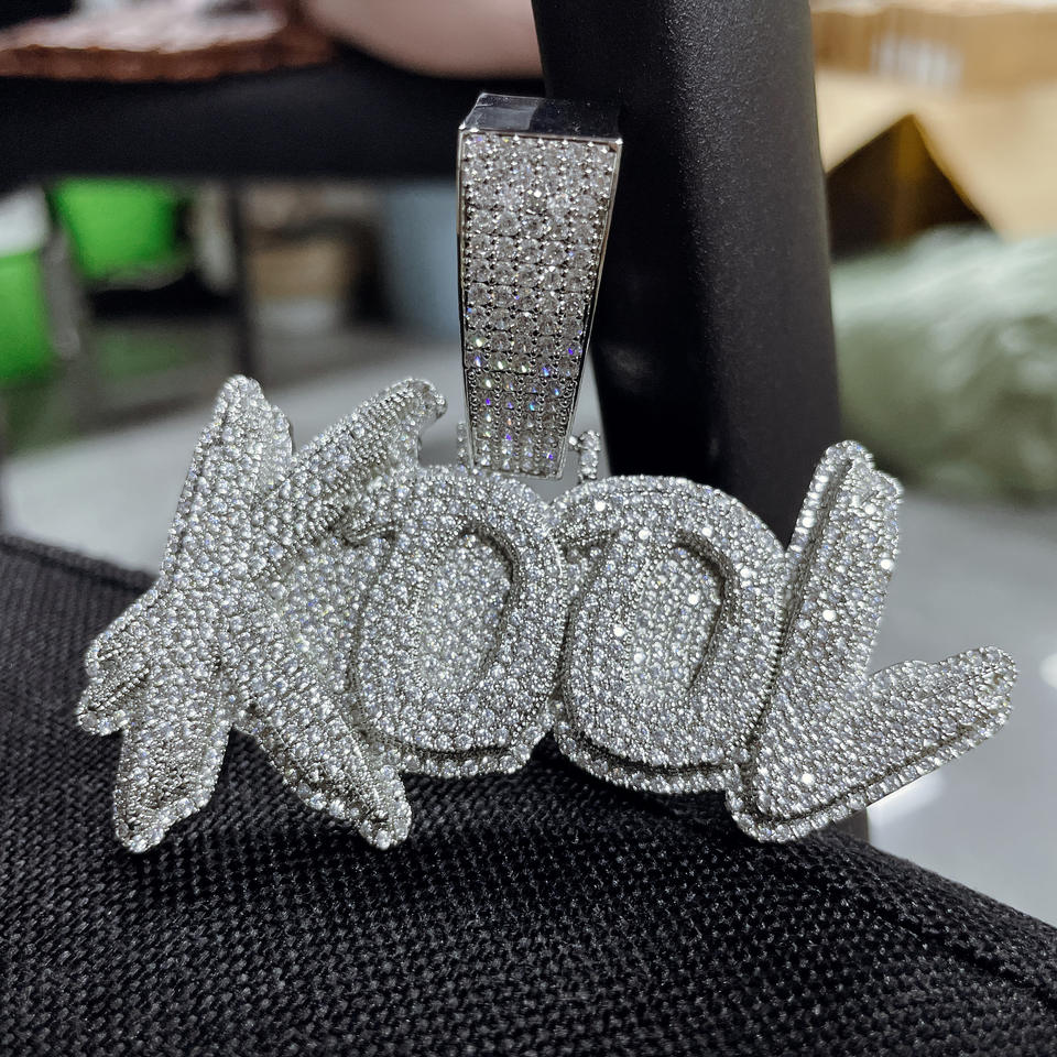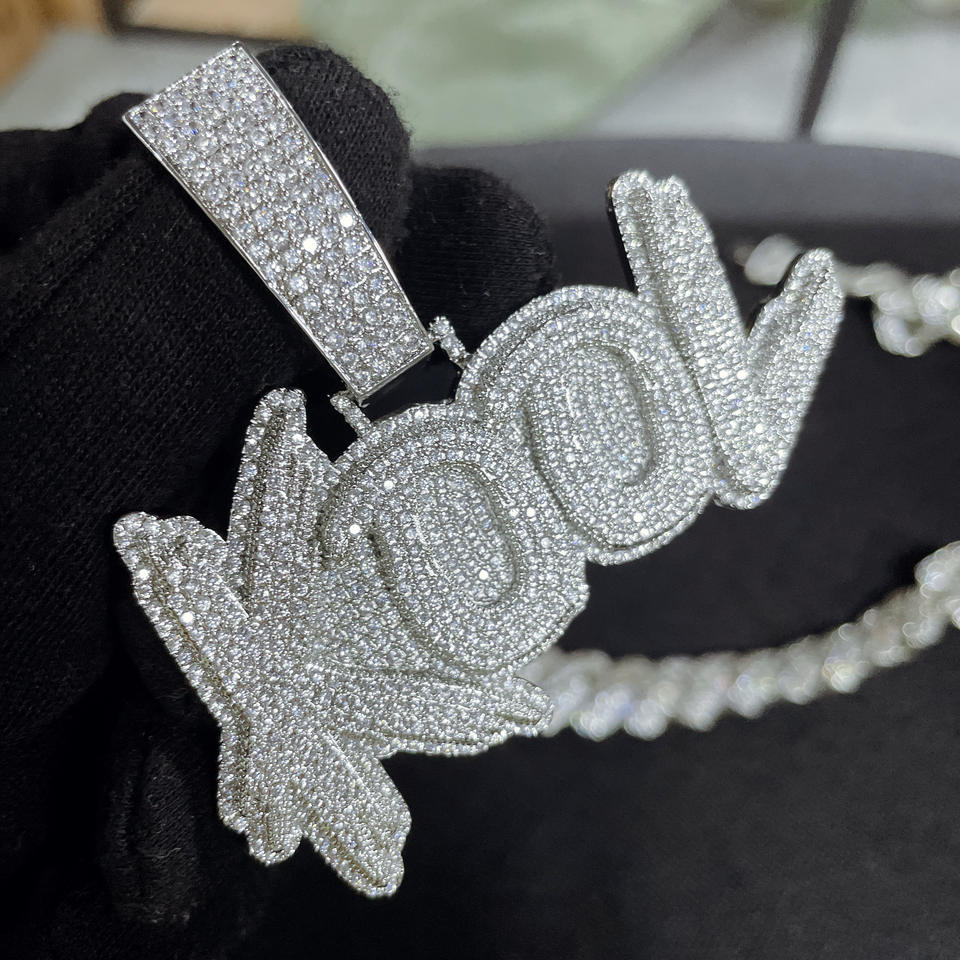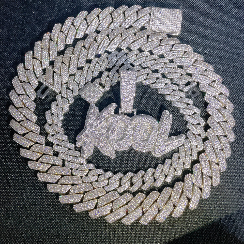 Collana Hip Hop con Nome e Numero, Doppio Strato Bicolore, Completamente Decorata con Zirconi, Ciondolo Personalizzato con Lettere Maiuscole