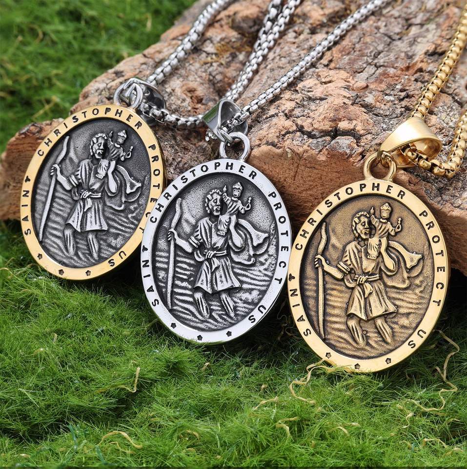 Hip Hop Punk Archangel Michael Trendy 316 Stainless Steel Fine Fashion Jewelry 18k Pvd Gold Plated Pendant Necklace for Men 2025