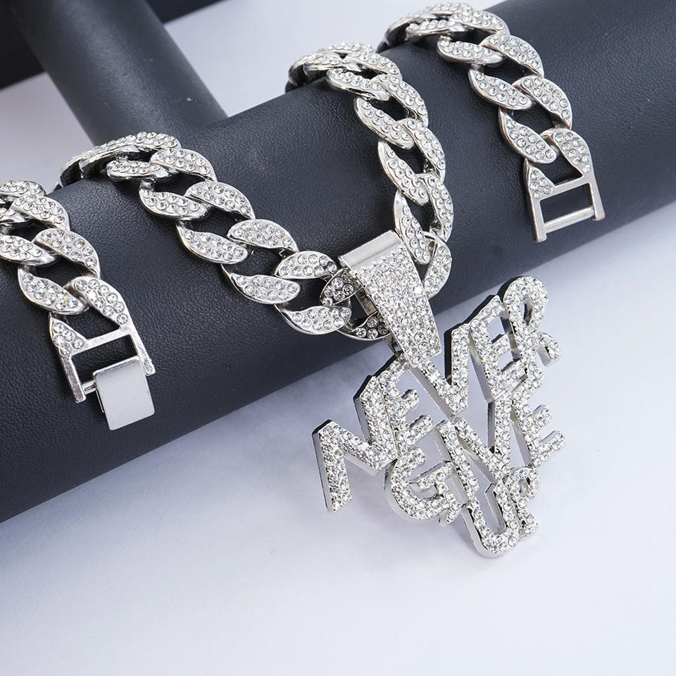 Strass Hip Hop non rinunciare mai collana pendente e catena cubana 15MM ghiacciata
