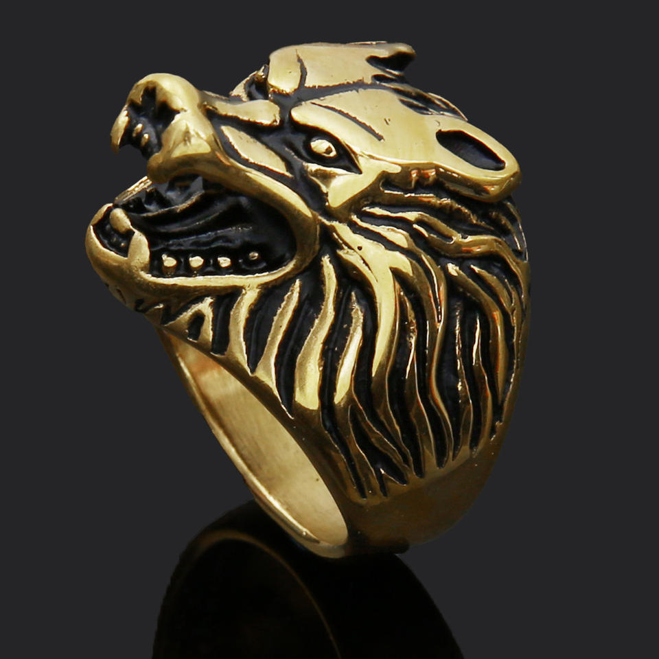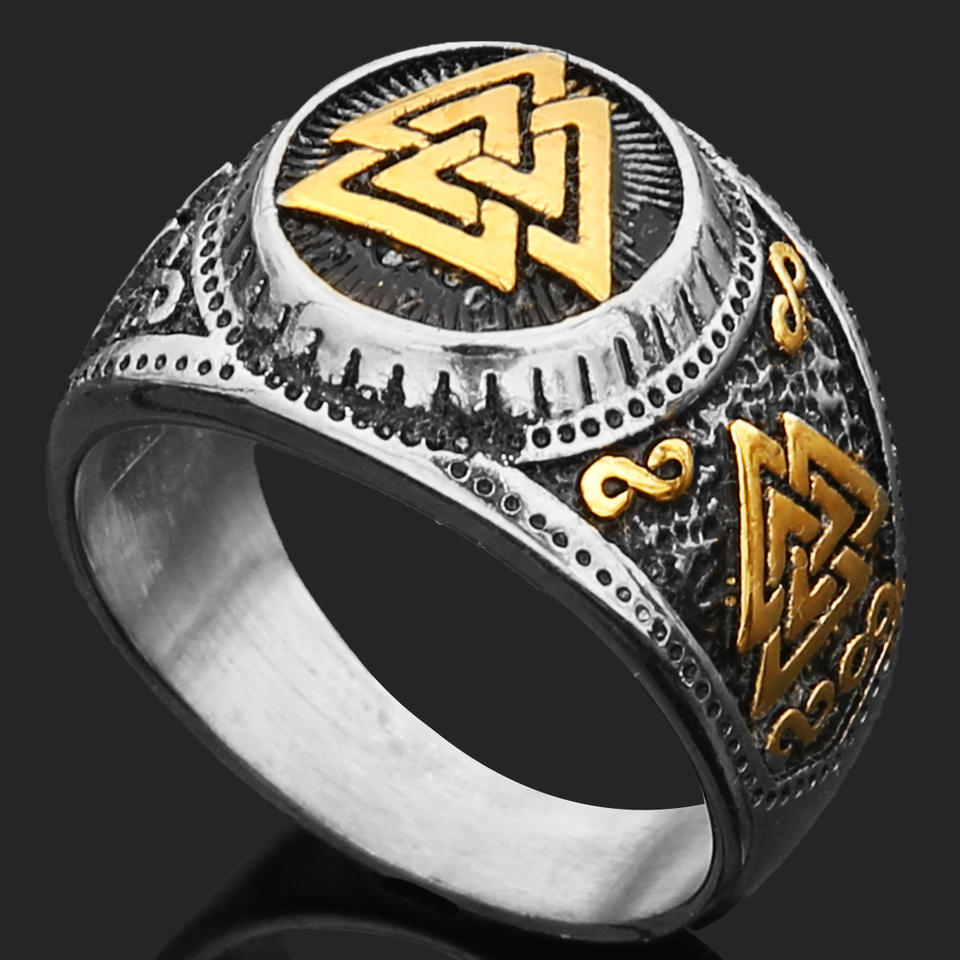 Hip Hop Stainless Steel Nordic Celtic Knot Valknut Rune Wolf Head Gold Rings Men Viking