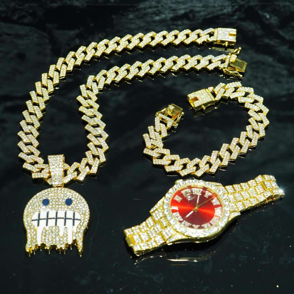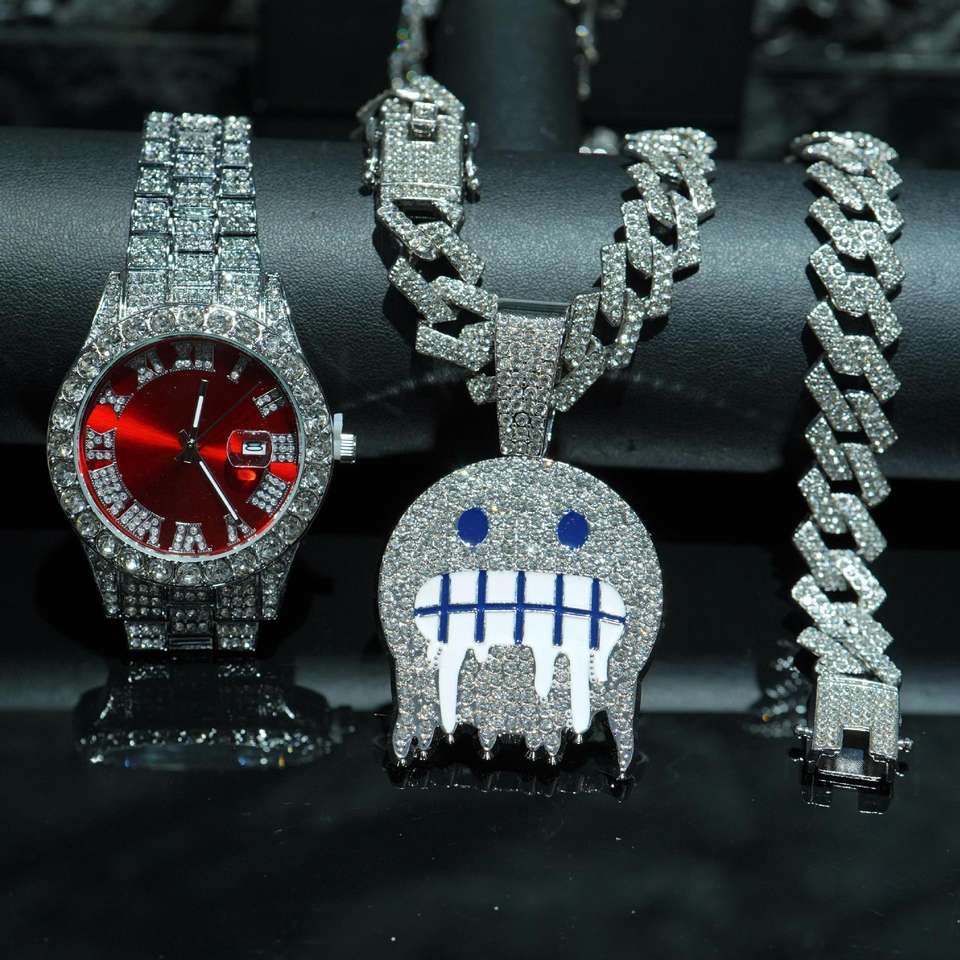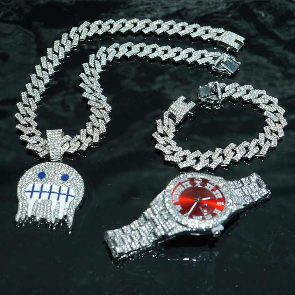 Orologi Hip Hop collana bracciale Set di lusso 3 pezzi orologi da polso al quarzo da uomo gioielli di moda