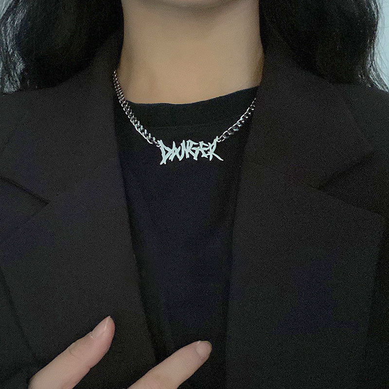 Hiphop Stainless Steel Gothic DANGER Necklace Wholesale Punk Rock Custom Letter Initial Necklace Jewelry for Men Women