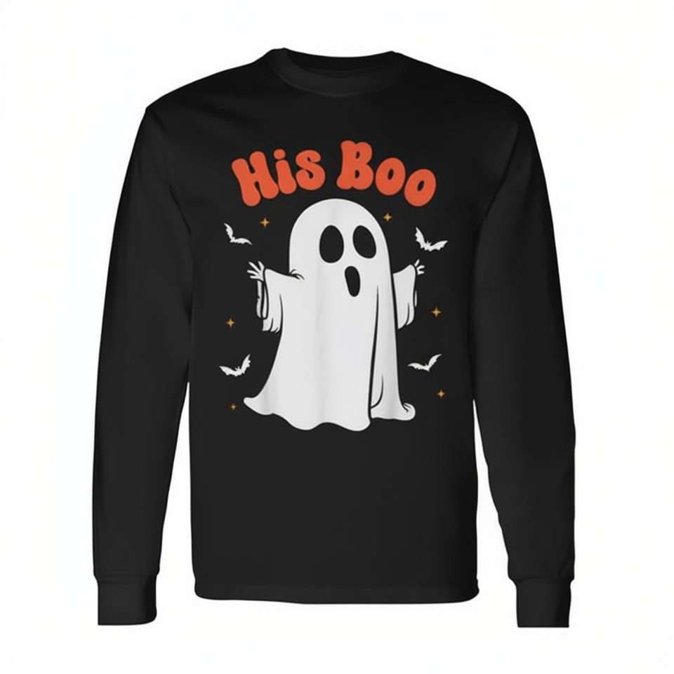 His Boo Ghost Halloween Long Sleeve T-Shirt Couples Matching Design