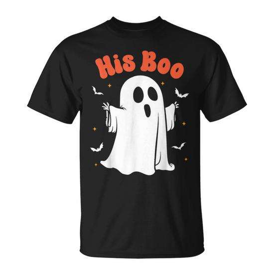 T-shirt His Boo Ghost Halloween nera per adulti, design unisex spaventoso