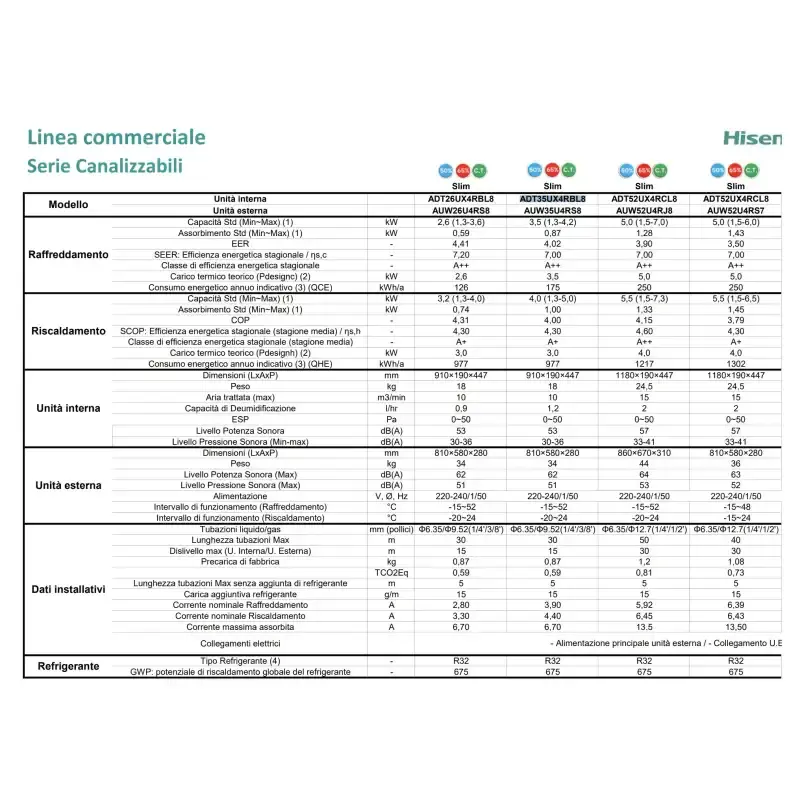 Condizionatore d'Aria Elettrico Hisense a Frequenza Variabile 10001-12000 BTU, Sistema Canalizzato Dual Split 3AMW62U4RJC A++ R32
