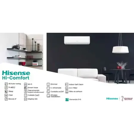 Condizionatore d'Aria Hisense Hi Comfort Wi-Fi Dual Split 10001-12000 BTU R-32 A++ a Risparmio Energetico Modello Domestico 3AMW62U4RJC Inverter