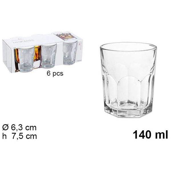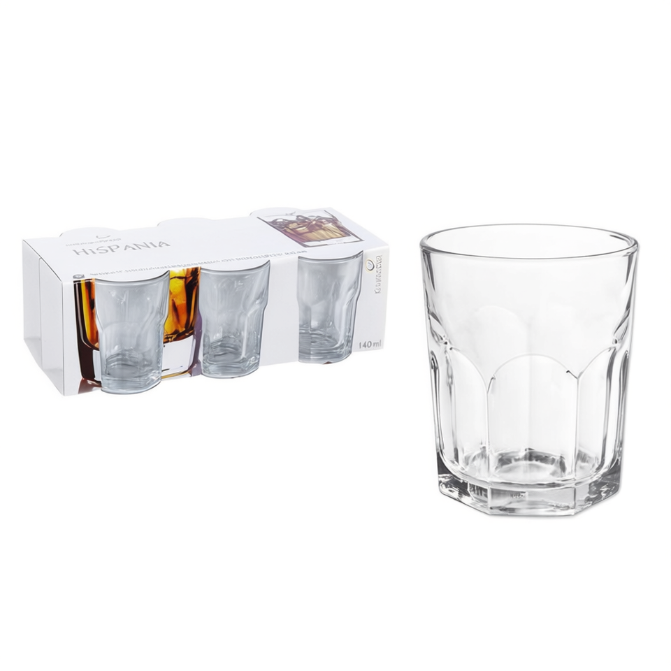 Bicchiere Hispania 140ML Classico Trasparente con Motivo Solido, Parete Singola, Lavabile in Lavastoviglie, per Feste, Confezione da 6, Spagnolo