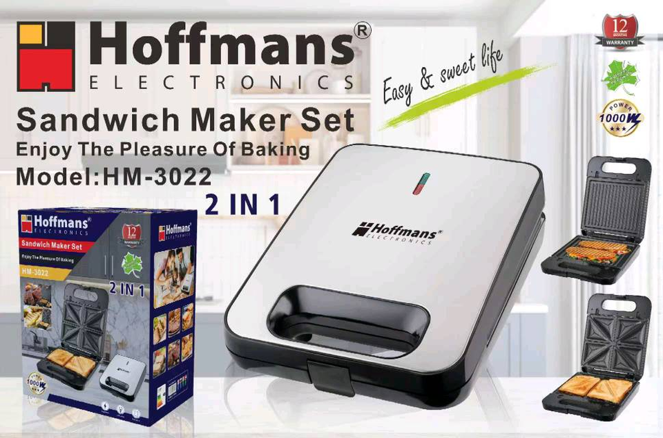Hoffmans New Arrival Removable Plate Sandwich Toaster 2 in 1 Easy Clean Non Stick Coating Electric Kitchen Appliance