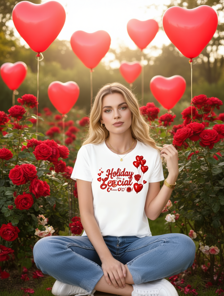 Holiday Special Valentine's Day 3D Heart Balloon Print Plus Size Women's Round Neck Short Sleeve T-Shirt Spring Casual Cotton