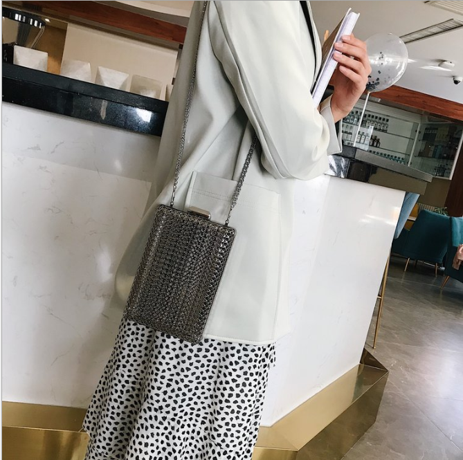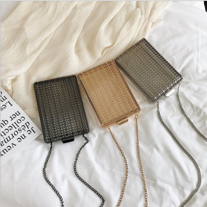 Hollow Metal Women Shoulder Bag Gold Cages square Clutch Evening Ladies Luxury Wedding Party Crossbody Purse Handbag