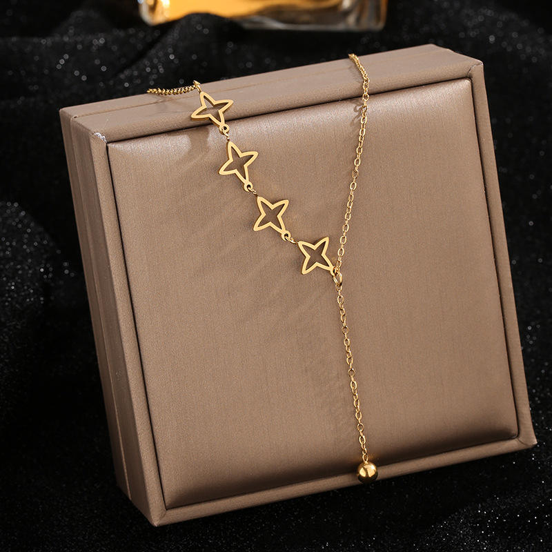 Hollow Star Splicing Necklace with Tassel Collarbone Chain Plated with 18k Gold Stainless Steel New Design Non Fading Necklace