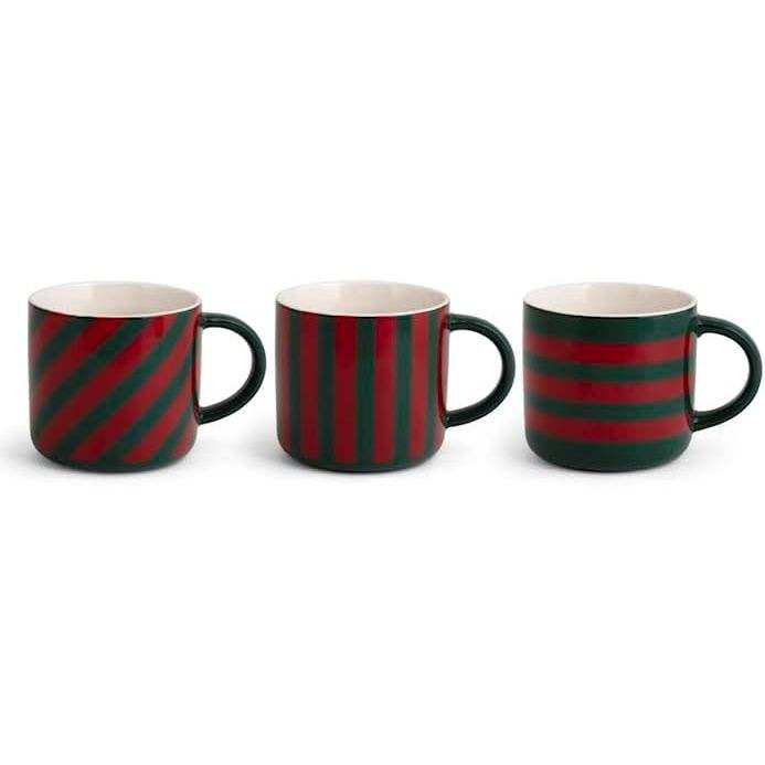 Set di 3 Tazze Holly Cc360 in Ceramica a Righe Rosse e Verdi