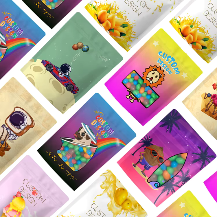 Sacchetto in Mylar con Ologramma Colorato, Antiodore, Laminato in Alluminio e Plastica, Piccolo Bustino da 1g 3.5g 7g 14g con Base d'Appoggio