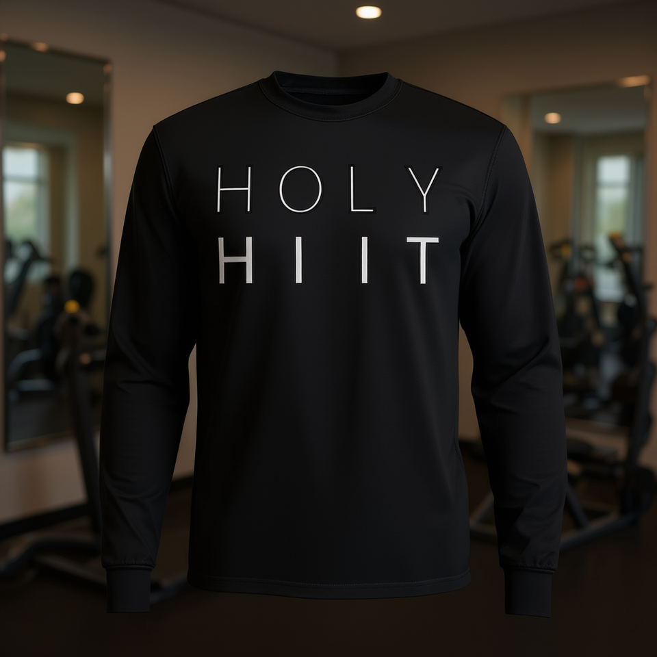 Maglietta a maniche lunghe Holy HIIT nera unisex ad asciugatura rapida per allenamento in palestra