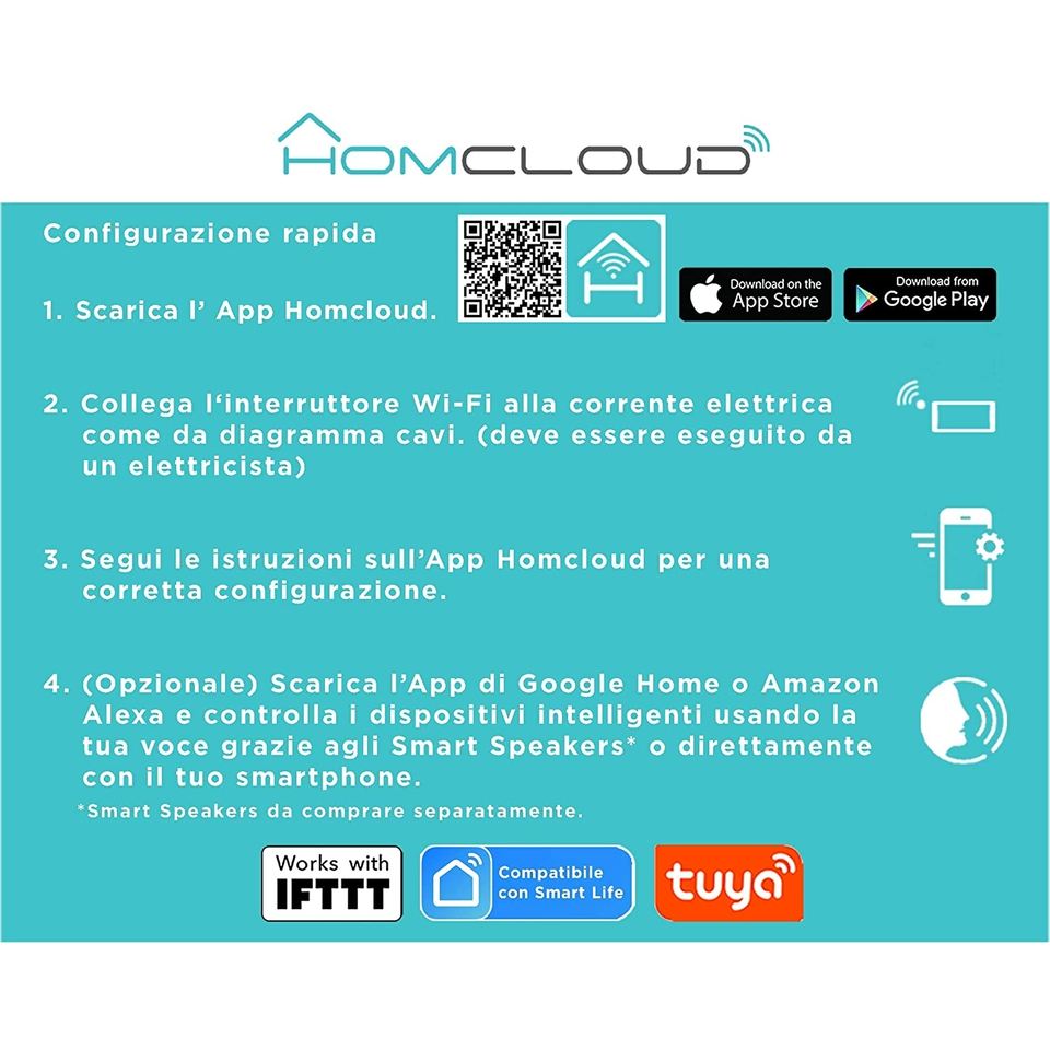 Modulo Dimmer Wi-Fi Smart Homcloud 220V-240V 150W Max, Controllo App, Interruttore Universale Plug-in